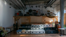 Unser 117 m² großes Studio im ersten Stock der Rindermarkthalle St. Pauli ist der ideale Ort für Theaterproben, Seminare, Workshops, Coachings oder Meetings. Das Studio befindet sich zwischen dem Atelier einer Graffiti-Künstlerin und weiteren ruhigen Nachbarn. Die Ausstattung umfasst eine Soundanlage, und auf Wunsch können ein Beamer, Flipcharts und Pinnwände oder ein Flachbildschirmfernseher dazu gemietet werden. Eine Küche sowie ein Vorraum mit Umkleide stehen ebenfalls zur Verfügung, und auch Trommeln können für kreative Sessions genutzt werden.