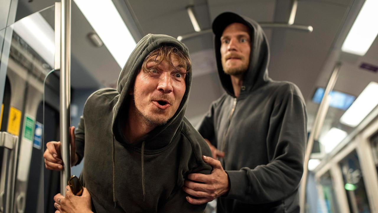 Die Täter „Klöte“ und „Stempel“ (Robin Guillaud Bongarts)  nehmen ihr Opfer ins Visier. Noch ahnt Nina Sieveking nicht, wie weitreichend deren Streit mit Musiker Juli für sie sein wird. | Bild: NDR / Thorsten Jander